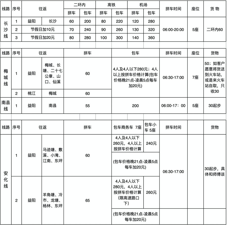 拼包車收費標(biāo)準